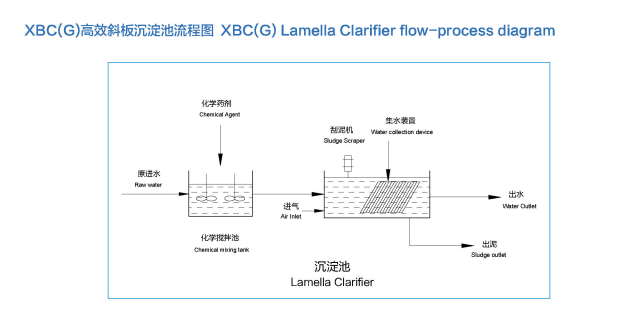根据水流和泥流的相对方向,可采用逆向流或同向流方式。该斜板沉淀池包括:沉淀池体、斜板组件、集水槽、可调出水堰板,集泥刮泥机(可选)等部件组成。